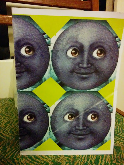 Если вы не поняли в чем соль этой фотографии, поясню: этот чудесный кругляшок сливового цвета- смайлик из ВК. И не просто смайлик, а самый любимый и часто используемый. Он отражает богатый внутренний мир участниц беседы в контактике "У НАС ВСЁ СУПЕР". И вот такую чудесную открытку я получила! Если бы я была сентиментальной, то обязательно разревелась. Ну и я была бы не я, если бы не помяла ее( "рыдающий смайлик").